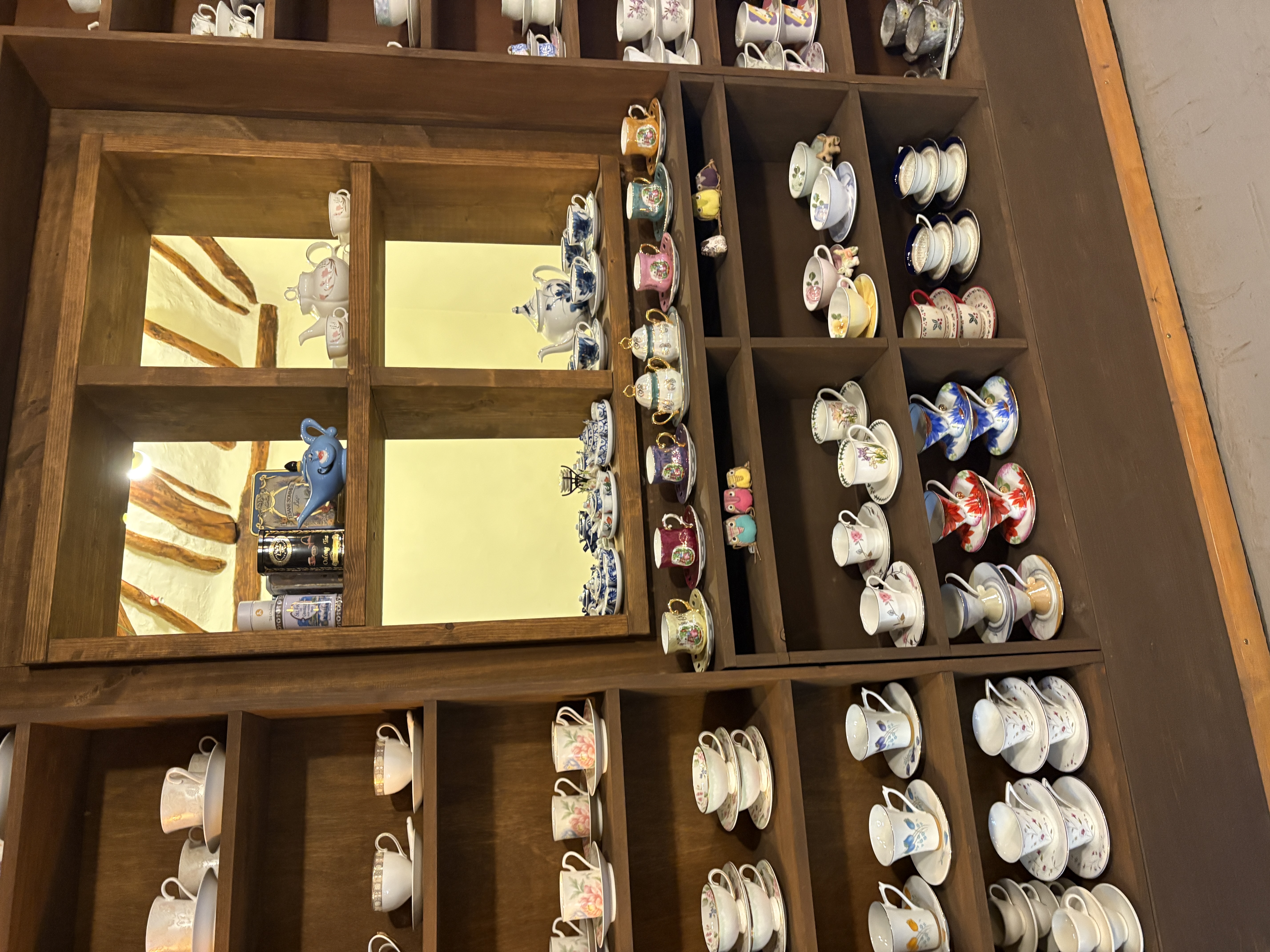 봉당을 거닐다 보면, 시선이 머무는 곳마다 독특하고 아름다운 골동품들이 자리 잡고 있음을 발견하게 됩니다. 묵직한 질감의 도자기, 섬세한 무늬의 찻잔, 그리고 옛 시대의 삶을 엿볼 수 있는 미싱틀과 같은 소품들은 단순한 장식을 넘어, 이 공간에 깊은 이야기와 역사를 불어넣습니다.