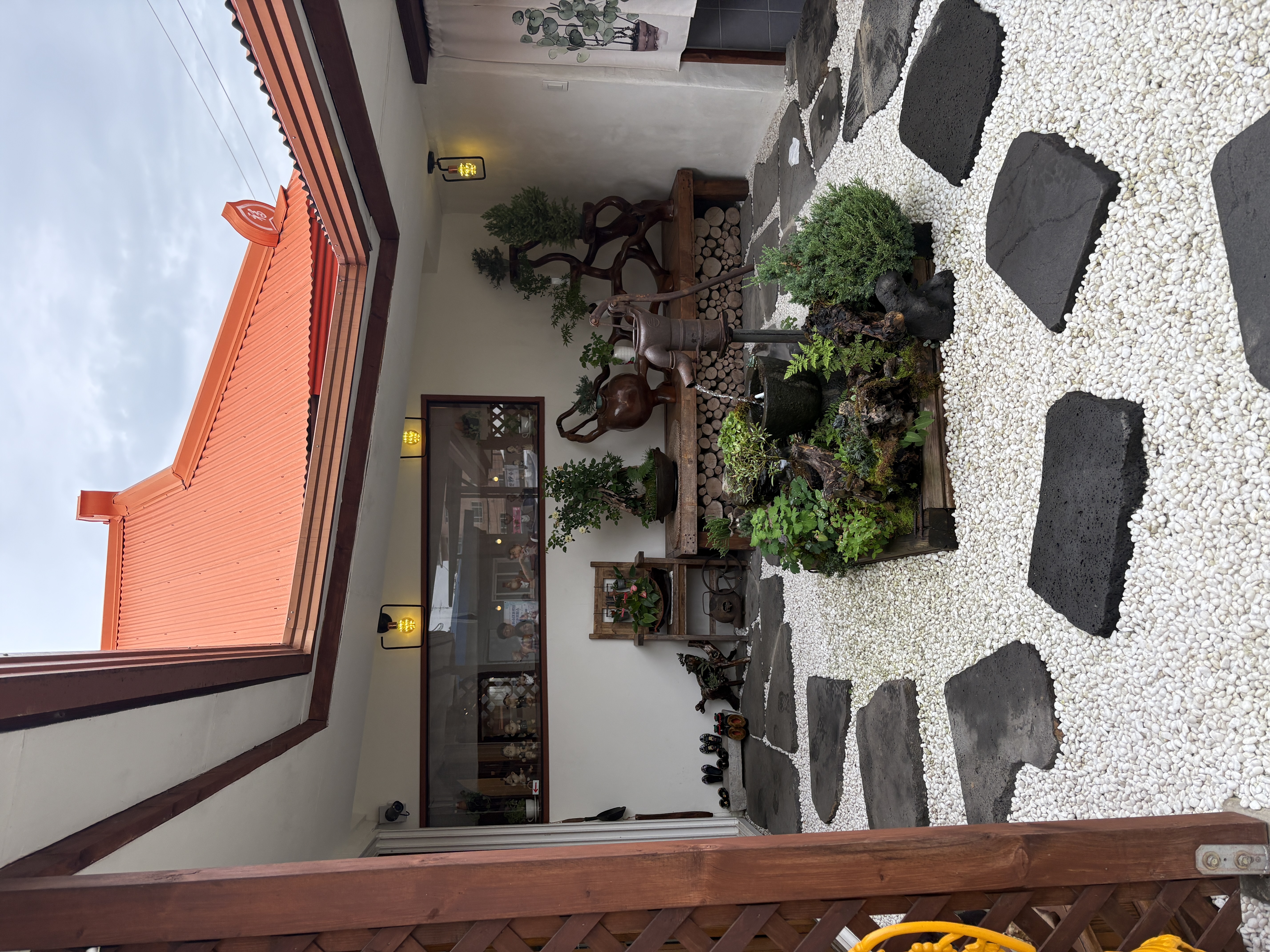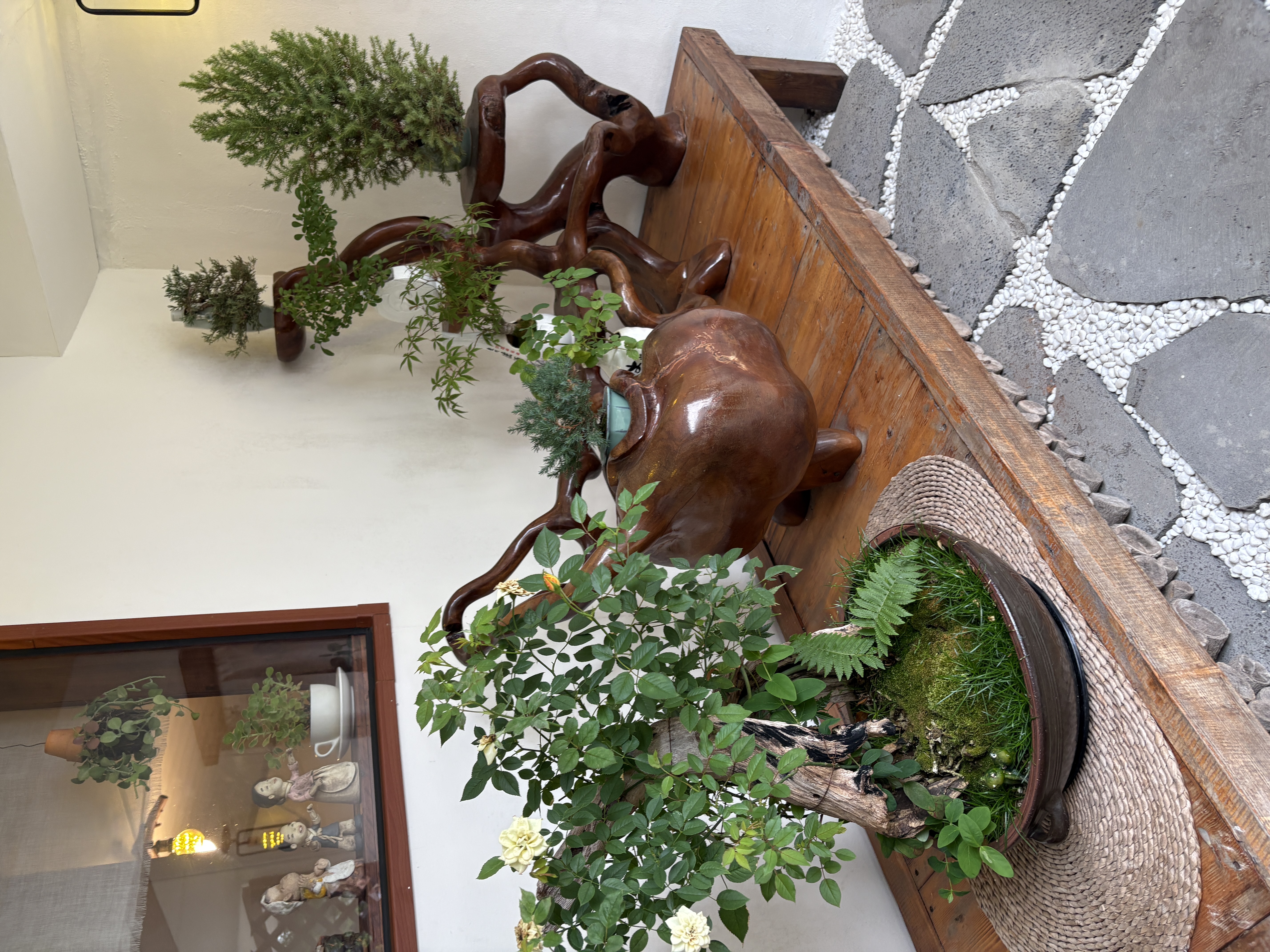 봉당의 또 다른 놀라운 점은 카페 내외부를 가득 채운 식물들의 생명력입니다. 분재, 다육이, 그리고 다양한 관엽식물에 이르기까지, 일일이 손이 많이 갈 수밖에 없는 수많은 식물들이 단 하나도 시든 것 없이 건강하고 싱싱함을 자랑합니다. 이토록 완벽하게 관리되는 식물들을 보면, 주인이 이 공간과 생명들을 얼마나 깊이 사랑하고 정성을 쏟고 있는지 여실히 깨달을 수 있습니다.