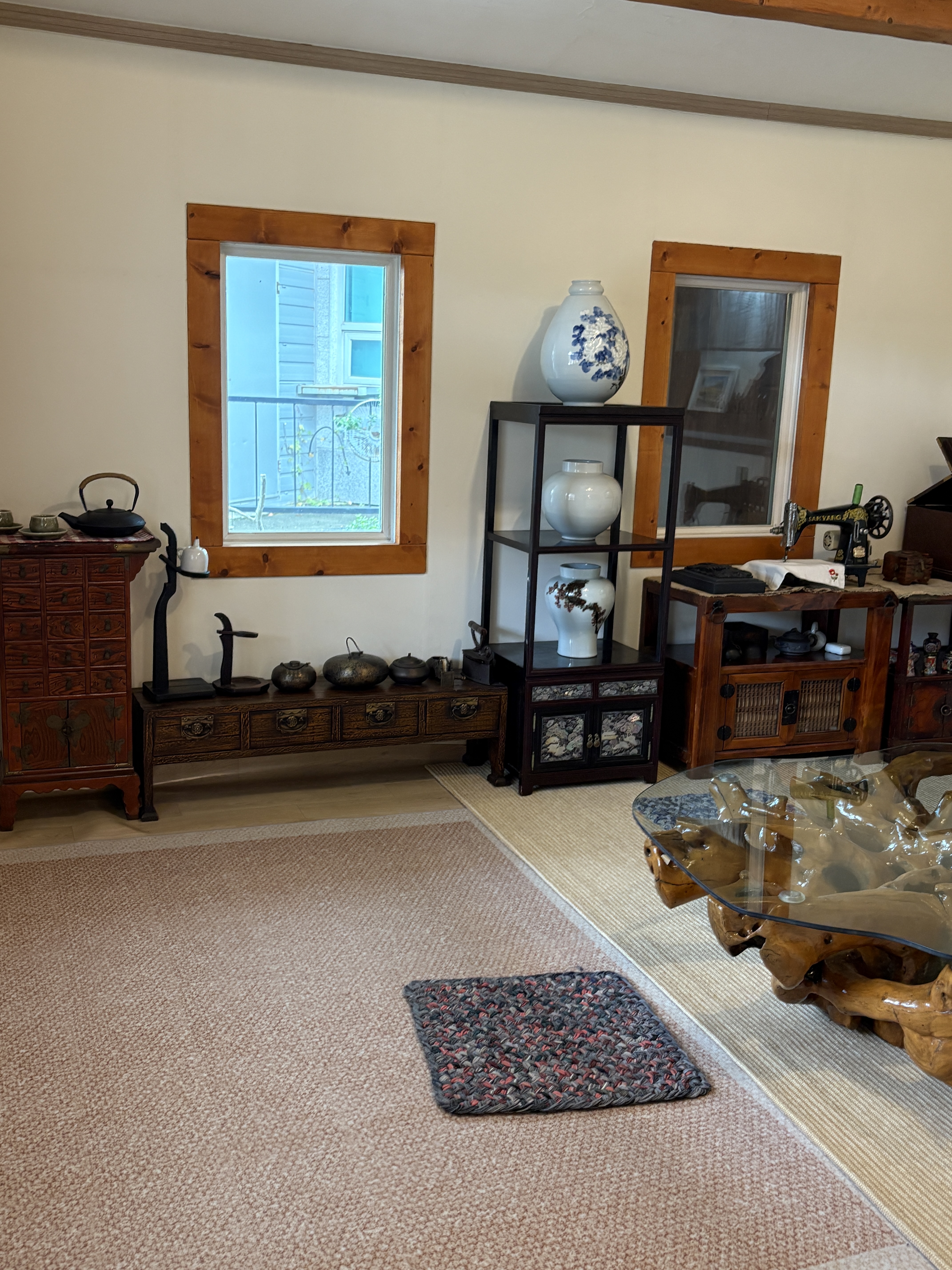 이러한 골동품들은 결코 무질서하게 놓여 있지 않고, 각각의 위치에서 공간의 미감을 완성하는 예술 작품처럼 존재합니다. 과거의 유산과 현대적인 인테리어가 충돌하지 않고 조화롭게 공존하는 모습은 봉당의 수준 높은 미적 감각을 증명합니다. 구석구석을 탐험하며 새로운 골동품을 발견하는 재미는 봉당에서 누릴 수 있는 또 하나의 큰 즐거움입니다. 이곳에서는 '보는 즐거움'만으로도 시간이 훌쩍 지나갑니다.