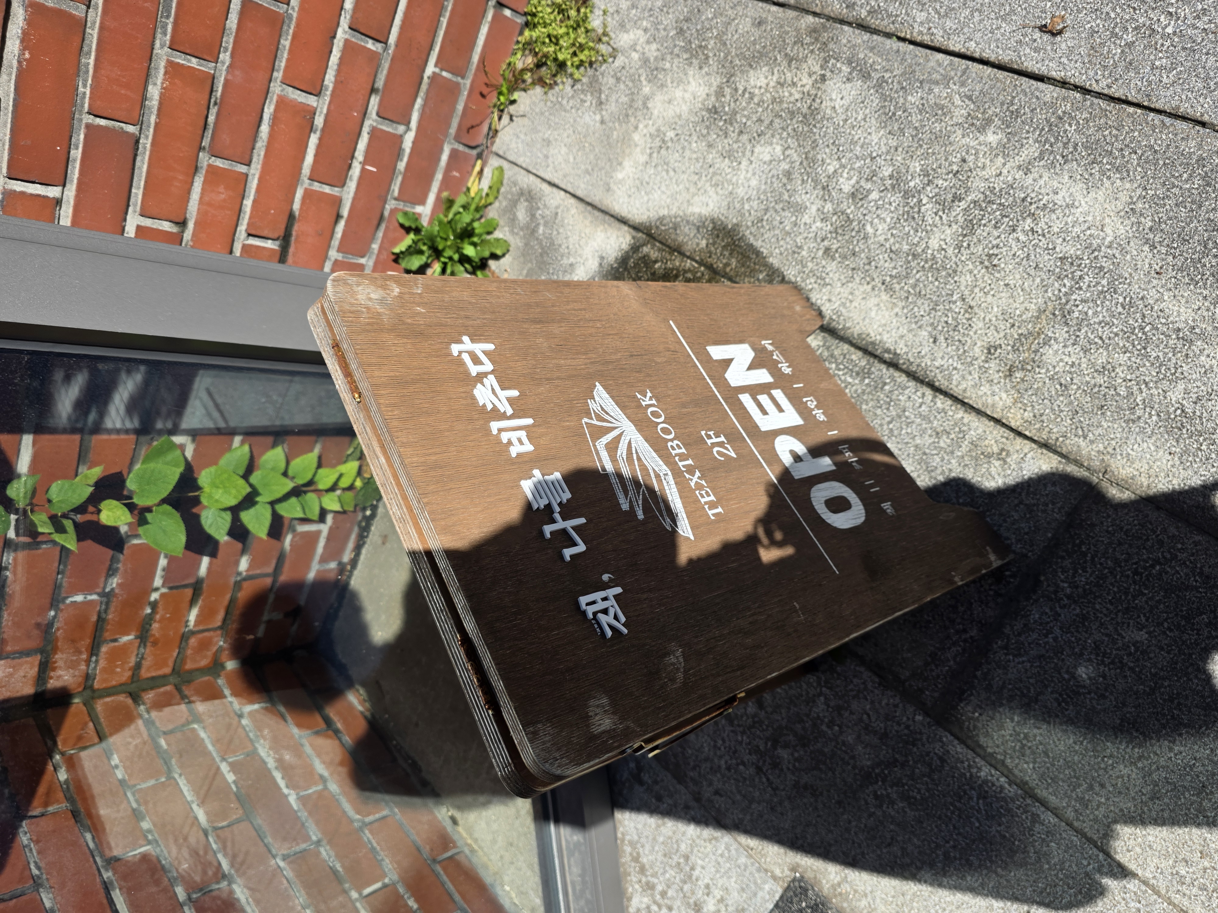 - Located in the quiet atmosphere of Seochon near Gyeongbokgung Station, the Book Salon Textbook is a place that goes beyond just a bookstore or cafe and provides a special shelter for book lovers. The experience of finally stepping into this place, which I only looked through with my eyes every time I came and went, and enjoying a leisurely time while drinking remained a small joy of everyday life. Rather than choosing a book in a hurry, I was able to naturally get closer to the book in the calmness of space. Thanks to this, I was able to bring out a book I liked in my arms.