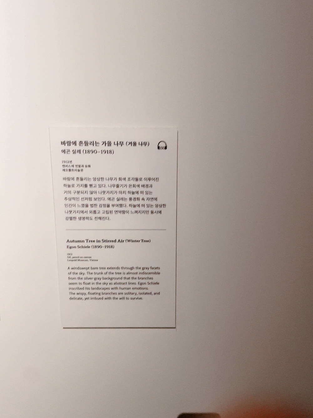 이번 전시에서 특히 인상 깊게 남았던 작품은 구스타프 클림트가 그린 작은 초상화들이었습니다. 그중 한 작품에서는 이탈리아 르네상스 대가인 레오나르도 다 빈치의 '스푸마토(Sfumato, 연기처럼 윤곽을 흐릿하게 처리하는 기법)' 기법을 계승하면서도, 클림트만의 특유의 뿌옇고 몽환적인 회화적 표현이 더해져 있었습니다. 이는 클림트가 고전적인 기법을 단순히 모방한 것이 아니라, 새로운 세기의 불안과 희망이 교차하던 세기말의 감수성을 담아 자신만의 방식으로 재해석했음을 보여주었습니다. 짧은 순간에 지나가 버릴 수 있는 작은 초상화였지만, 그 속에 담긴 대가(大家)의 깊은 고민과 새로운 시도가 강렬한 인상을 남겼습니다.