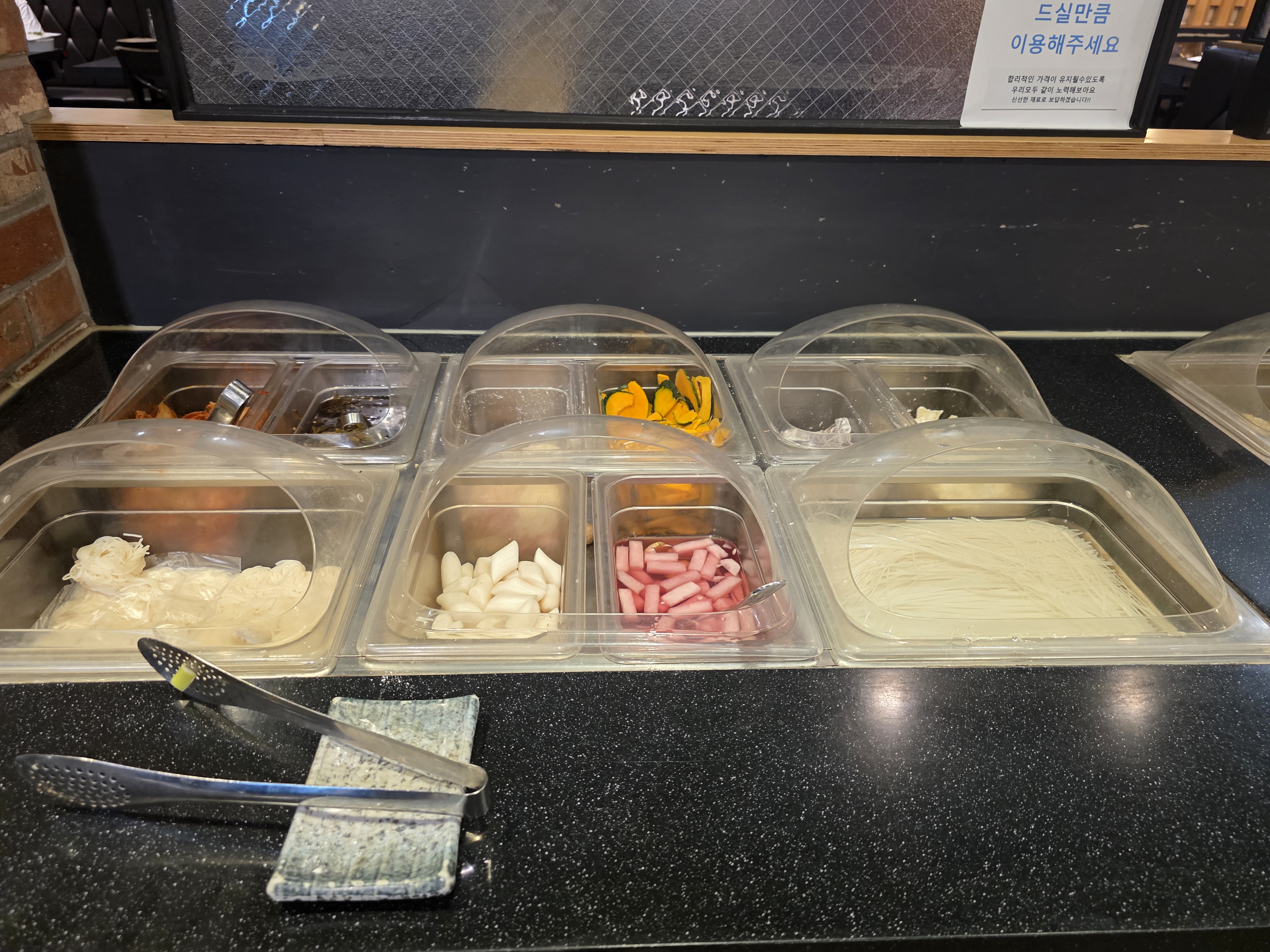 샤브샤브를 다 먹은 후에는 셀프바의 재료를 활용해 칼국수나 죽/볶음밥을 만들어 먹는 마무리 코스도 소담촌의 빼놓을 수 없는 즐거움입니다. 특히 남은 육수에 밥과 야채, 계란 등을 넣고 끓여 고소하게 만들어 먹는 죽은 완벽한 식사의 마침표를 찍어줍니다.