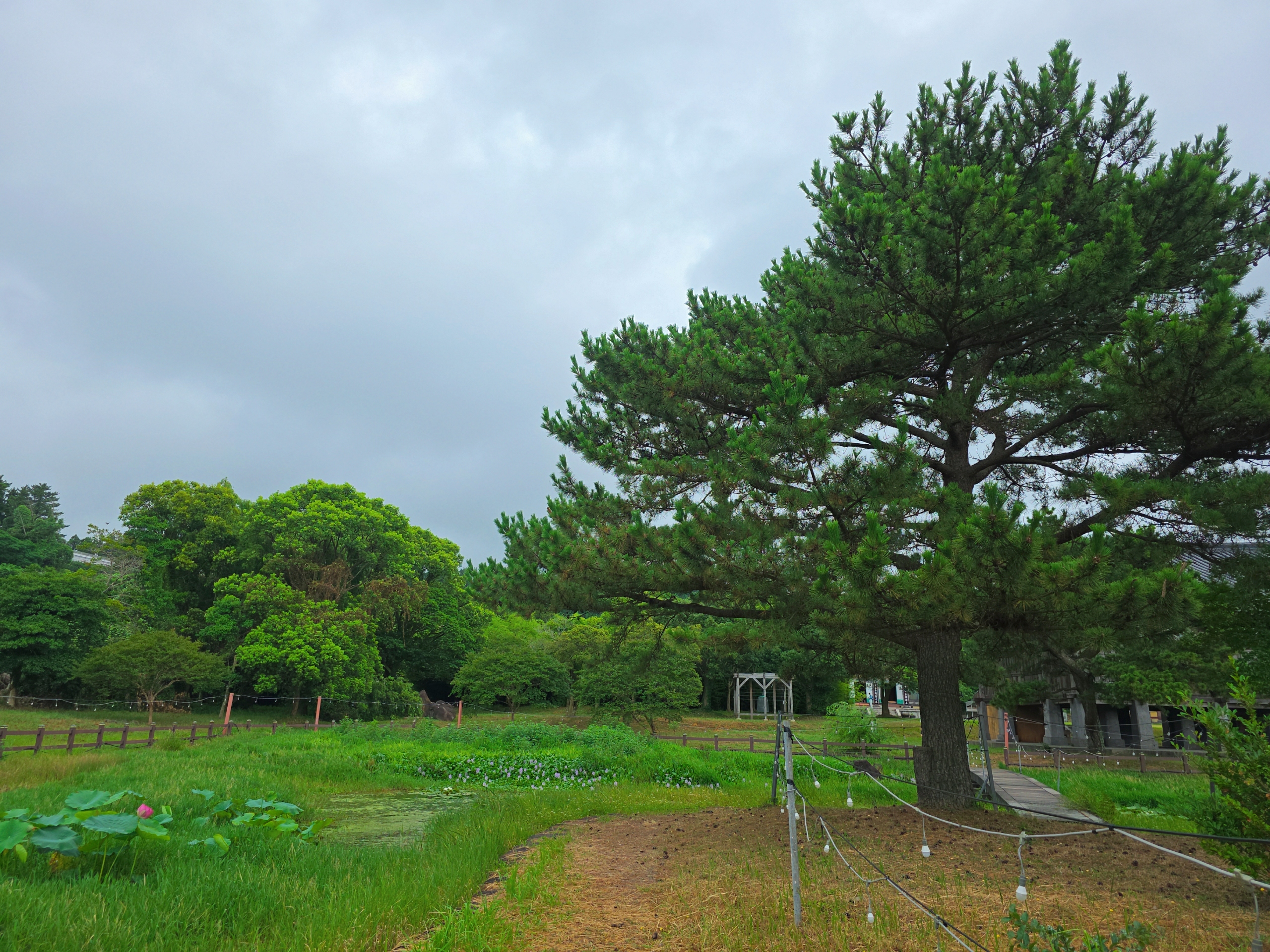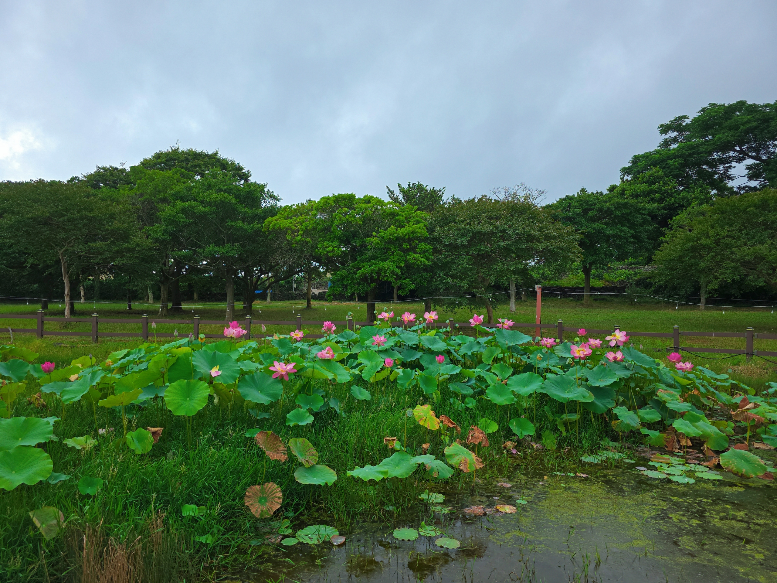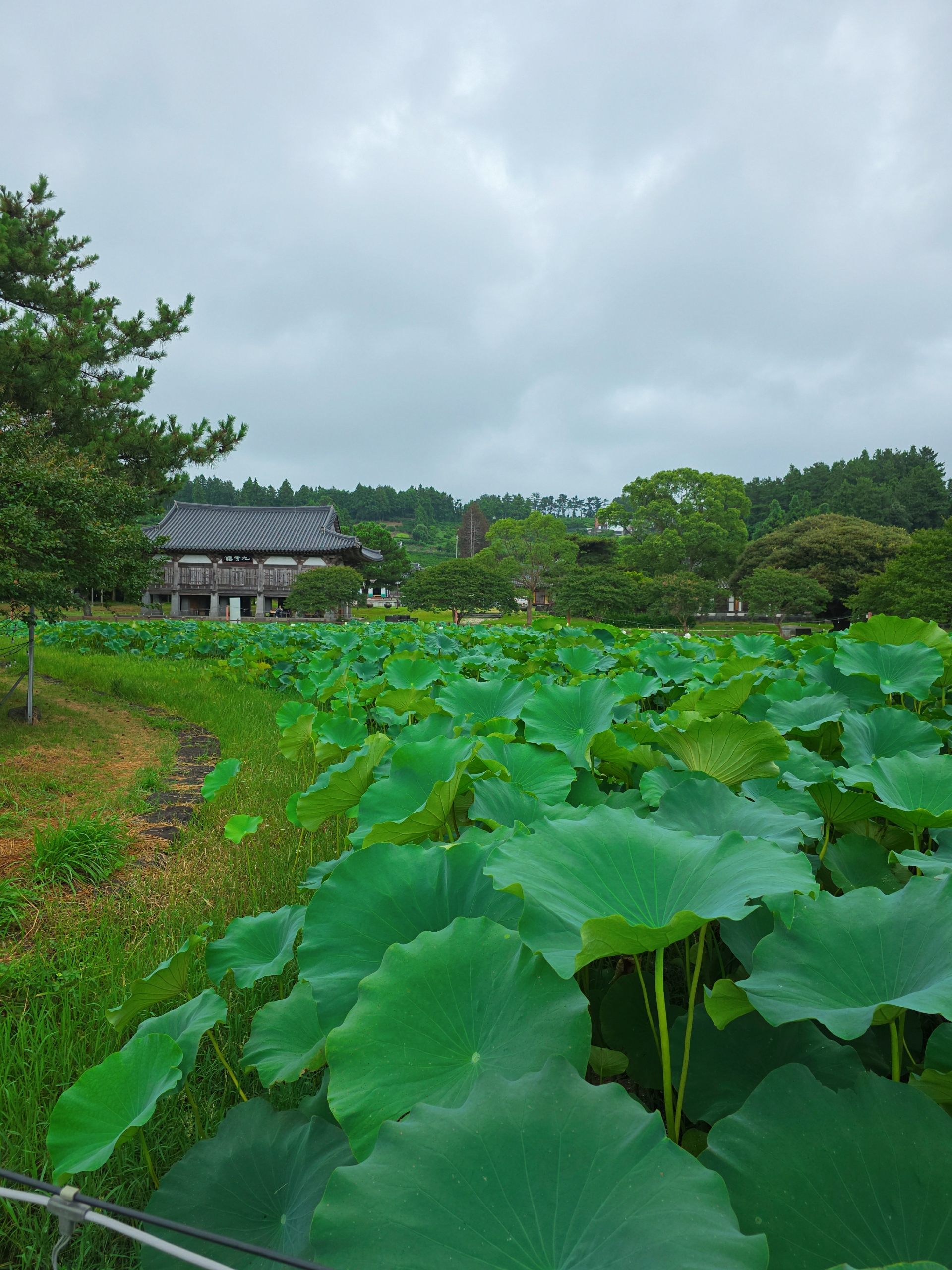 더욱이 저는 연꽃을 각별히 좋아합니다. 평소 일상에서는 쉽게 마주하기 어려운 꽃이기에, 연꽃이 피는 곳이라면 일부러라도 찾아가 그 우아함을 만끽하려 합니다. 법화사는 바로 이 연꽃으로 유명한, **'구품연지(九品蓮池)'**라는 드넓은 연꽃 정원을 품고 있습니다. 3,000평에 달한다는 이 연못은 백련, 홍련, 수련 등이 만발하여 마치 연화세계를 눈앞에 펼쳐 놓은 듯한 장관을 연출합니다. 건물 자체는 소박한 크기이지만, 이 광활한 연꽃 정원과 주위의 소나무, 대나무 등 자연 경관이 어우러져 만들어내는 조화로움은 정말이지 경이롭습니다.