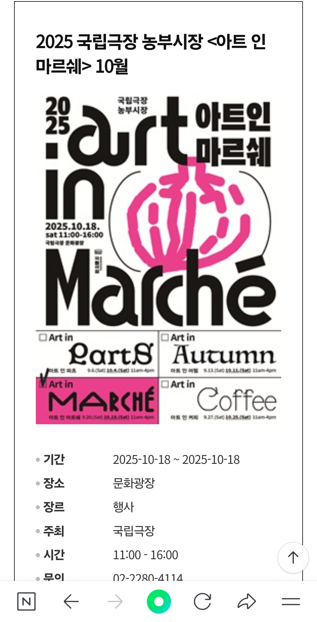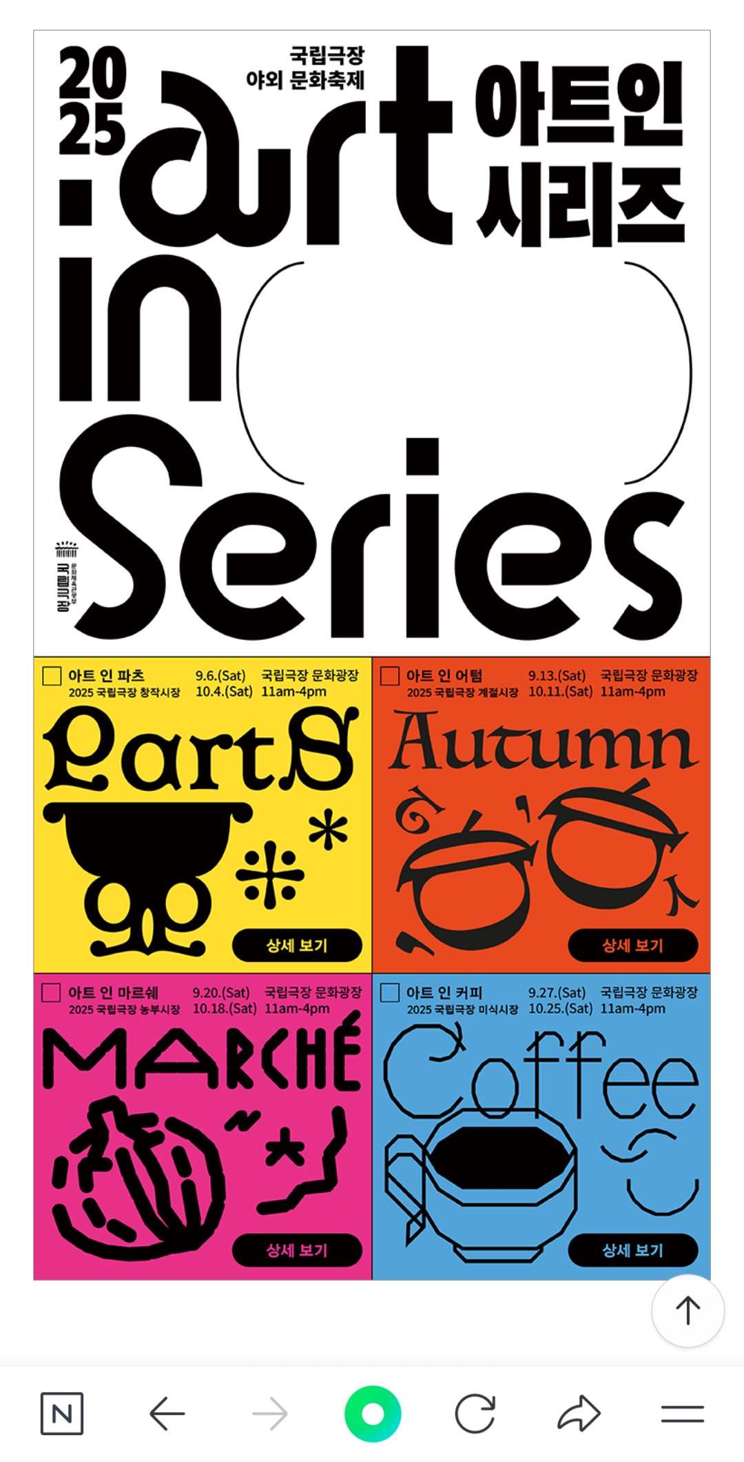 공연과 플리마켓이 접목된 이 참신한 축제, **국립극장 '아트 인 시리즈'**는 서울 한복판에서 무료로 수준 높은 문화생활과 건강한 소비 경험을 동시에 제공하는 보석 같은 기회라고 확신하였습니다. 깊어가는 가을, 주말 나들이 장소를 고민하고 계신다면, 이 특별한 예술 장터를 다른 분들에게도 강력히 추천하고 싶었습니다.